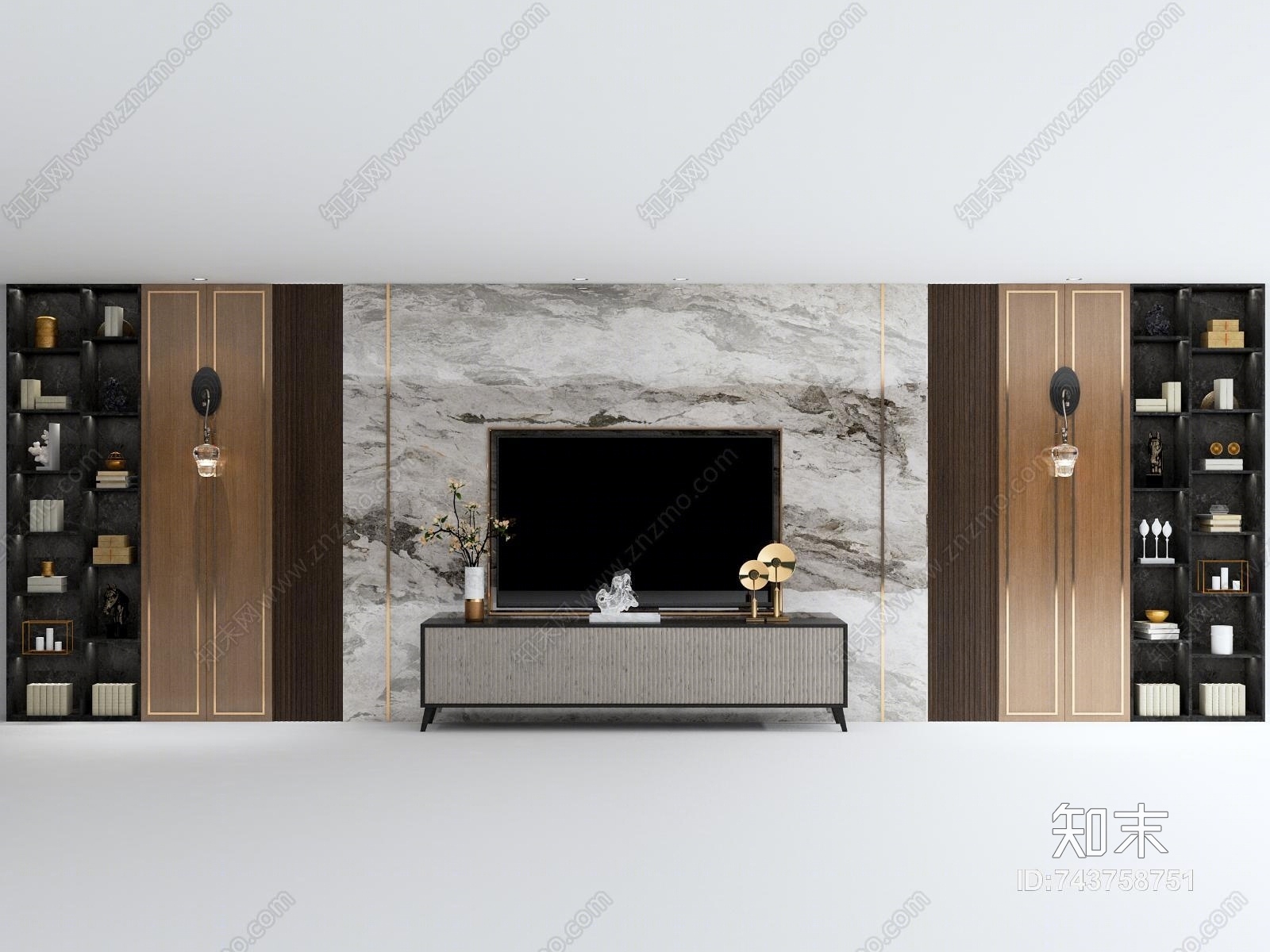 现代电视机背景墙3d模型下载 Id 知末3d模型网