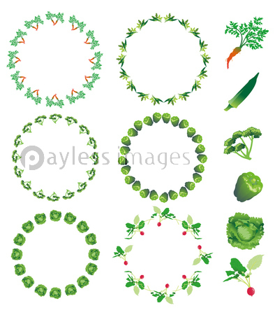野菜フレーム 丸 ニンジン オクラ パセリ ピーマン レタス ラディッシュ ストックフォトの定額制ペイレスイメージズ